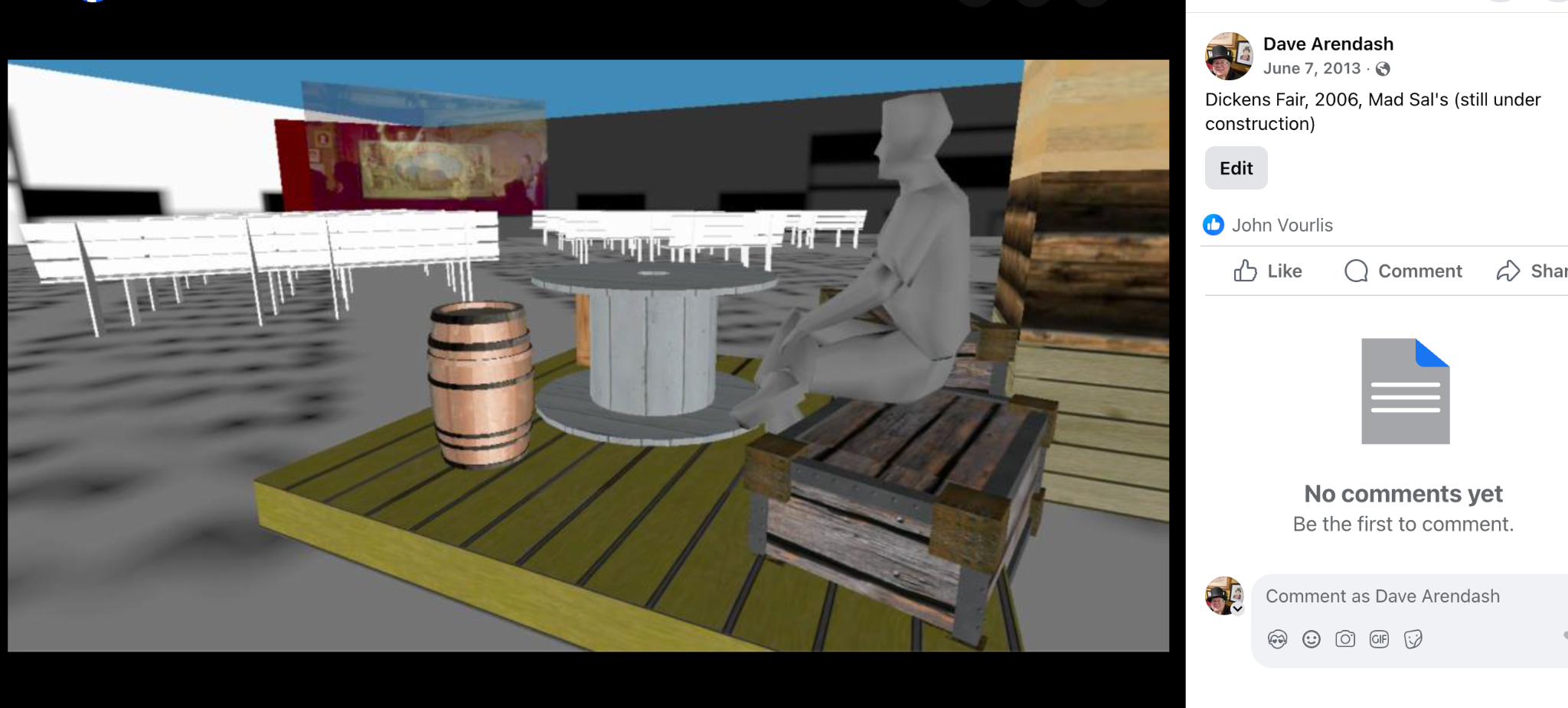 This has been an ongoing passion. In 2013 it was about using a PDF of the floor plan to build the major walls and structures, and stock objects to populate the world. This was clearly going to very labor intensive, and I imagined crowd-sourcing it, making a multi-user collaborative platform, where folks sharing my vision would contribute models and images to populate it out. But I also knew that future tech would make this approach a waste of time.